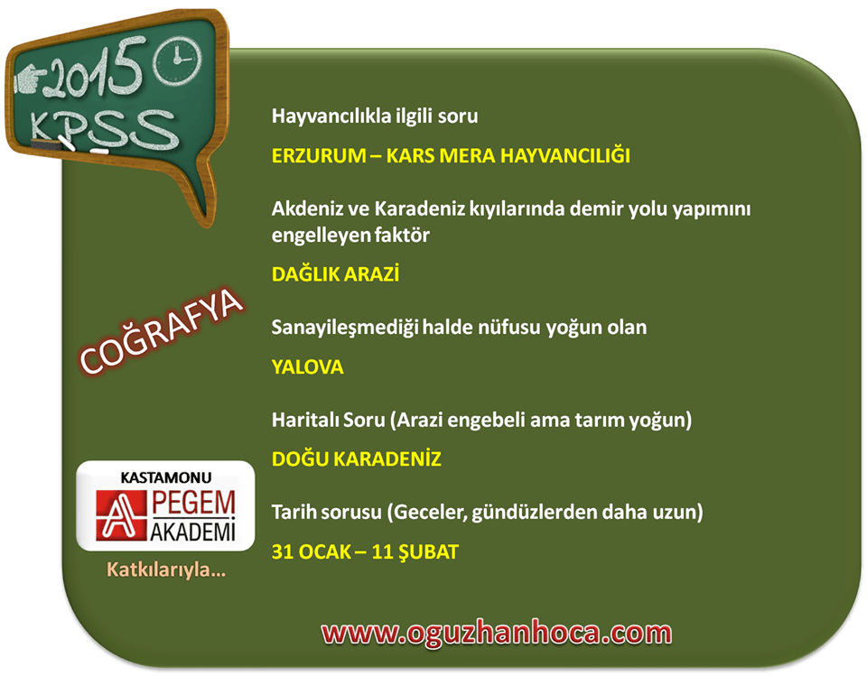 2015 KPSS Coğrafya Soruları ve Cevapları