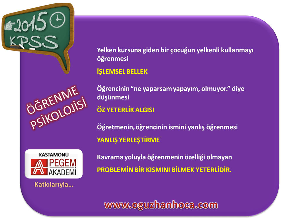 2015 KPSS Öğrenme Psikolojisi ve Cevapları